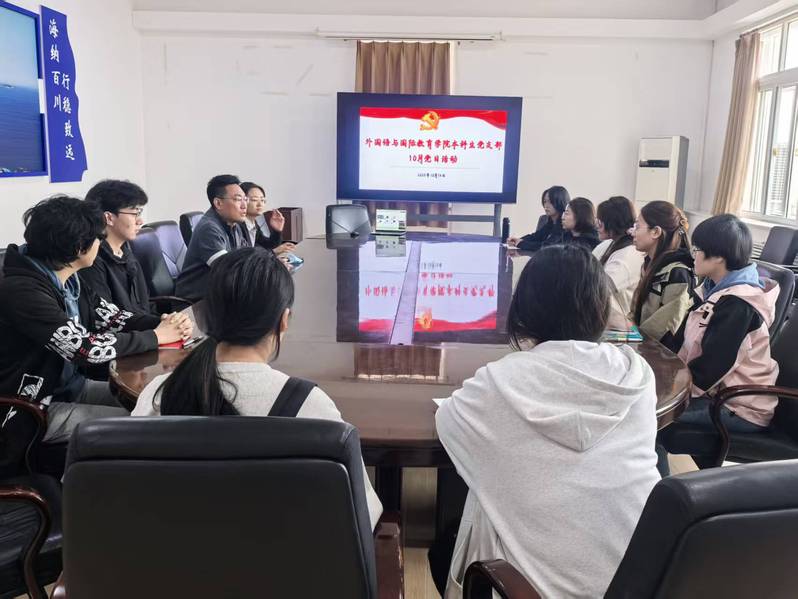 10月15日,外国语与国际教育学院本科生党支部开展10月主题党日活动。本科生党支部全体党员共同参加,本科生党支部书记周宇颂主持本次活动。