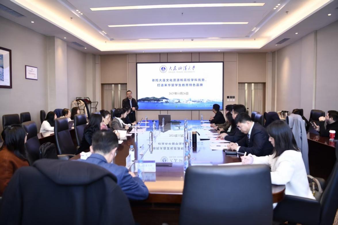 傅琼首先介绍了论坛发起背景,对参加论坛的各高校来华留学工作负责人表示欢迎。之后,各高校负责人结合论坛设定的四个主题逐一进行了发言。崔永光结合我校留学生工作作了题为“依托大连文化资源和高校学科优势,打造来华留学生教育特色品牌”的主题发言。他介绍了我校留学生基本情况、国际交流与合作、留学生特色项目,最后总结了经验与启示,提出了规划与建议。他着重介绍了我校承办的“新质工匠”职业技能培训项目2025年秋季班国际培训项目,取得的成效和社会影响。他指出大连作为中国海洋经济重镇,渔业基础扎实、区域资源优势明显,与国外沿海国家合作潜力巨大。要聚焦全球渔业全产业链合作前景,通过开展中外特色项目,强化产业优势,拓展蓝色经济空间,提升大连海洋文化中心城市和足球名城的国际影响力。最后,他提议建立大连市高校留学生教育联动机制,充分挖掘大连文化资源与高校学科优势;各高校充分发挥特色优势,深化对外合作,共同打造“留学大连、感知中国”品牌;深耕大连高校学科资源,推广水产养殖和渔业领域的先进发展成果,讲好大海大故事。