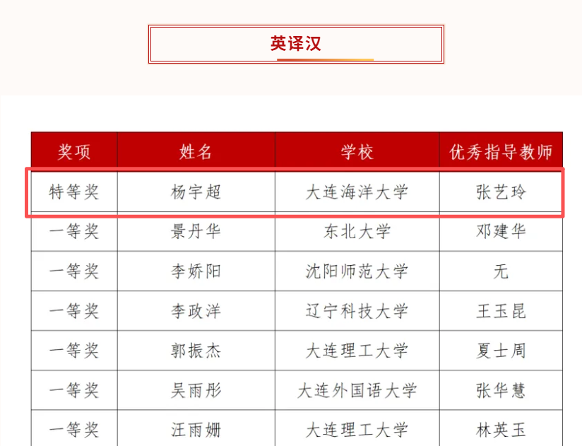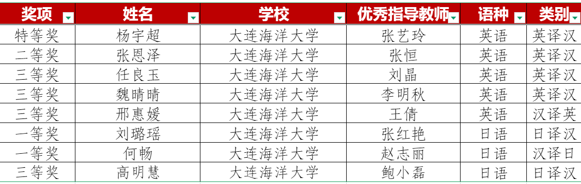 12月2日,由辽宁省翻译学会主办的第六届辽宁省翻译大赛结果公布,我校外国语与国际教育学院8名学子在英语、日语两个语种的竞赛中表现亮眼,取得突破性佳绩,共斩获特等奖1项、一等奖2项、二等奖1项及三等奖4项,我校获得“优秀组织奖”。