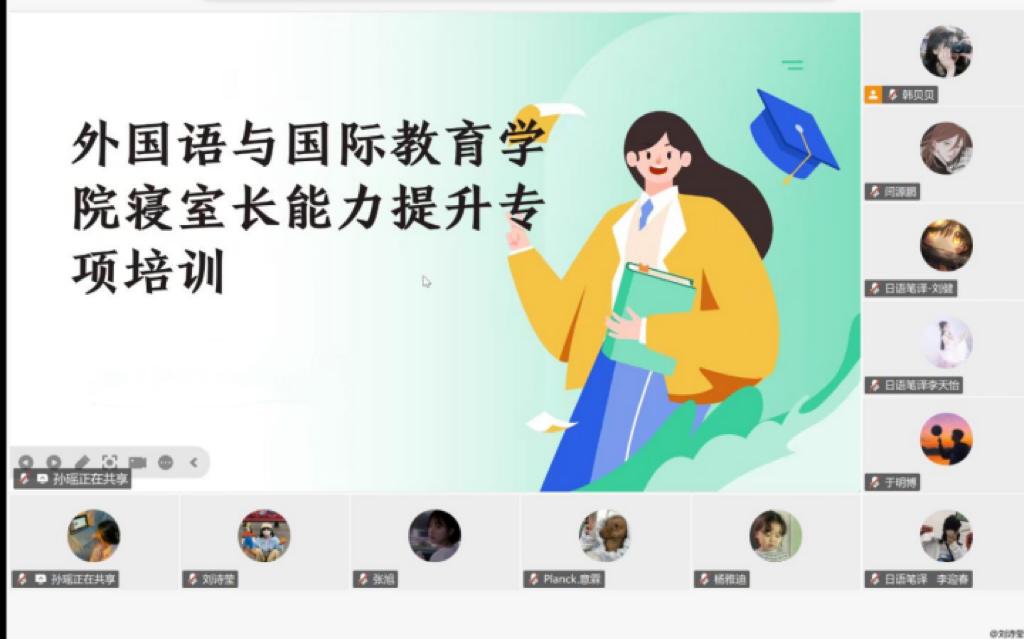 11月30日,我院在线举办研究生寝室长能力提升专项培训,旨在强化寝室长责任意识,提升管理服务能力,营造安全、文明、和谐的寝室育人环境。学院纪委书记黄桂峰、辅导员刘家馨和全体研究生寝室长参加活动。