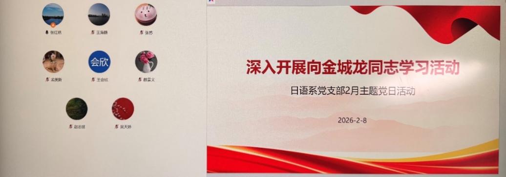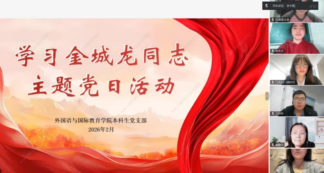 为深入学习贯彻习近平总书记关于弘扬雷锋精神的重要论述,落实上级党组织及学校关于开展向金城龙同志学习的部署要求,近期,外国语与国际教育学院党委组织各党支部以线上会议的形式,开展“向金城龙同志学习”主题学习研讨,实现了“党员全覆盖”,取得了良好成效。